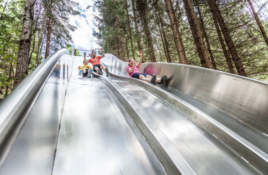 Mit viel Schwung und Spaß geht es durch den Waldrutschenpark von der Bergstation bis fast ins Tal bis zur Postalm. Über vier Tunnelrutschen und eine Breitwellenrutsche, mit Längen von bis zu 55 Meter, sausen Sie auf dem eigenen Hosenboden quer durch den Wald nach unten. Mit Hilfe eines Wanderweges können alle Rutschen umgangen oder mehrmals gerutscht werden.